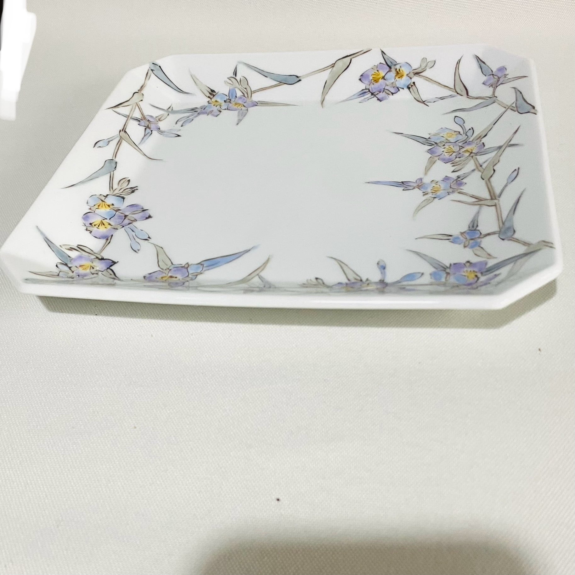 八角正皿 モノトーン 紫露草絵